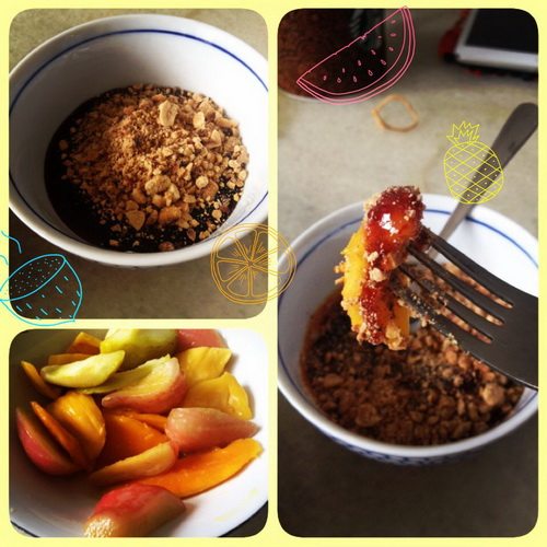 Этот соус погружения имеет Немного сладкого, кислого, пряного и любых фруктов в порядке, Сидней, папайя, яблоки, манго, песчаный, огуречный, ананас и ананасы очень освежают.