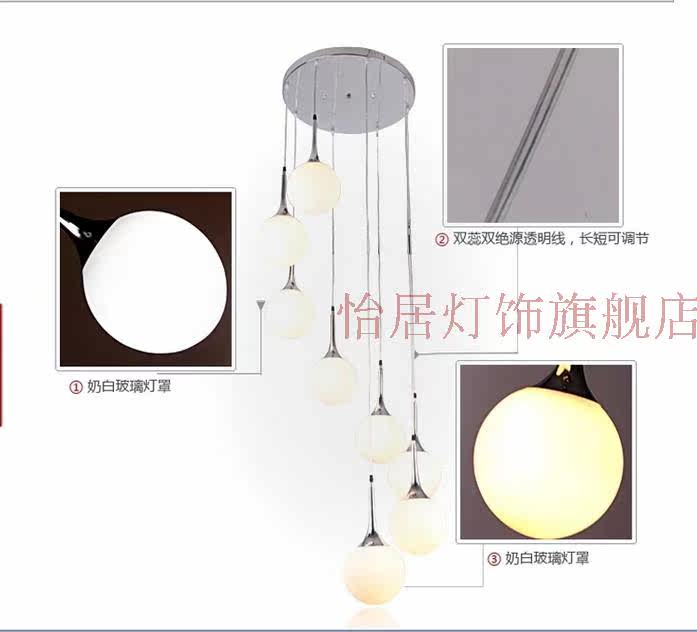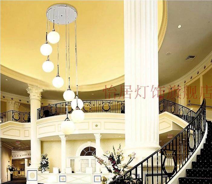 Лестница свет Шанс свет Светодиодная дуплексная лестница свет Молоко белый Сферическое висит свет Минималистская вилла свет С гостиной свет Украшение