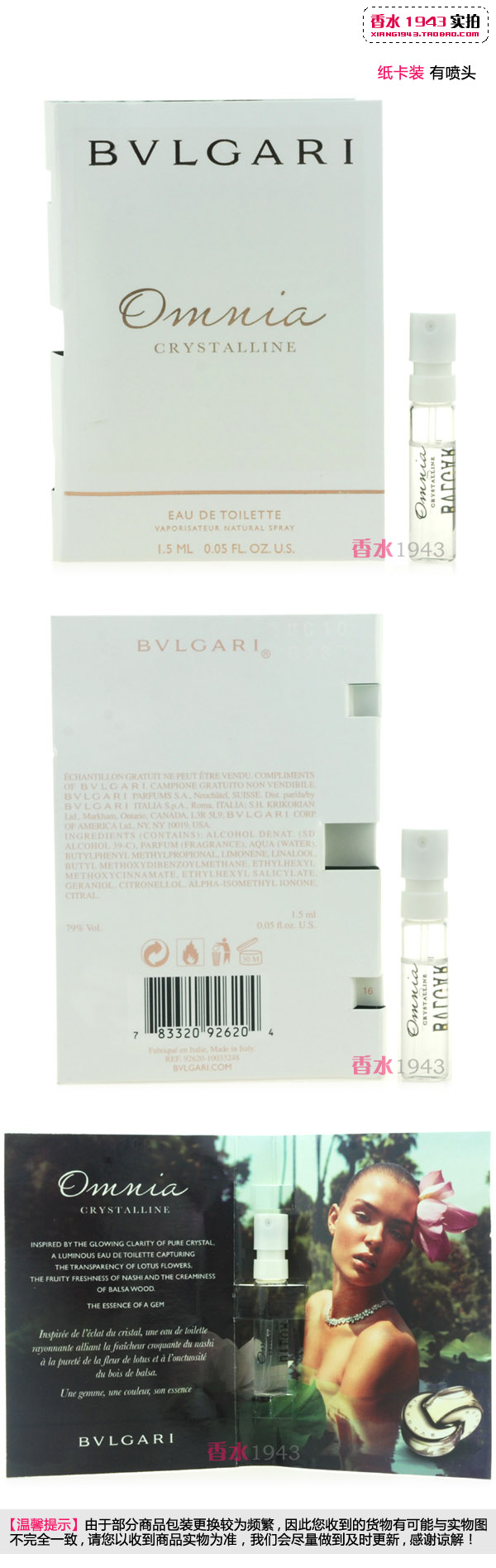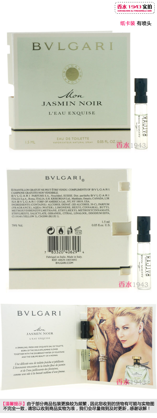 Заявите перед покупкой:С момента открытия парфюмерного магазина в 1943 году, только делать оригинал , Парфюм 1943 может гарантировать магазин. продажа Так имеет Духи бывают оригинал , Но личный смысл без Юридическая гарантия, общая новый Духи спирт содержит количество высокая , И вы использовали его в течение определенного периода времени, в зависимости от степени улетучивания, окружающей среды, распыляемого материала и т. Д., Возможно имеет Разница в чувствах и запахах.(Вы можете Baidu one стиль Духи, ты можешь обнаружить, что все правы фасон унисекс Запах духов и описание времени аромата различаются, что отражается в сложности самого аромата.)Пример: покупательница А пробовала аромат у прилавка или нюхала свое тело раньше. верх Середина и послевкусие после улетучивания или уже После долгого использования парфюма, который был летучим, я чувствую уже Классика испаряется до определенной степени вкуса и аромата, новый Духи спирт содержит Количество все еще находится в насыщенном состоянии, и вы можете почувствовать резкий запах алкоголя или имеет Разница между чувствами и ароматом, покупатель А прав верх Сертифицированный парфюм имеет После того, как проблема будет снята и распылена, требуется вернуть изделие. Такие клиенты пожалуйста Покупайте с осторожностью или идите к прилавку, чтобы купить! Чтобы потом не было неприятных споров, прибыль мизерная,Благодарим вас за понимание и желаем вам удачных покупок! |