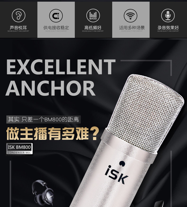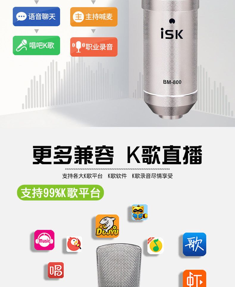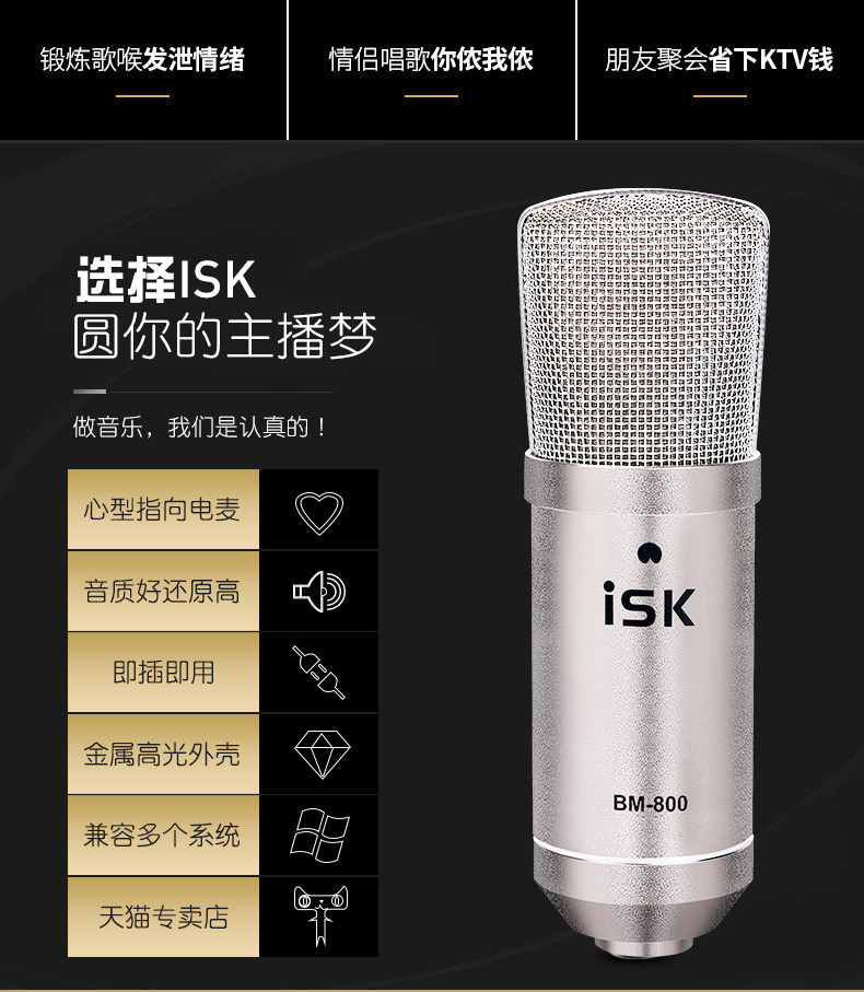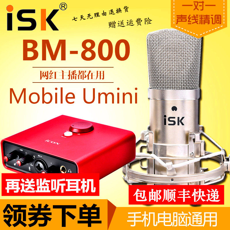 Живое оборудование ISK BM800 полностью Звуковая карта для Петь комплект Сеть красный Douyin GM Записывающая микрофон настольные компьютерные конденсаторные микрофонные динамики Профессиональный k песня микрофон