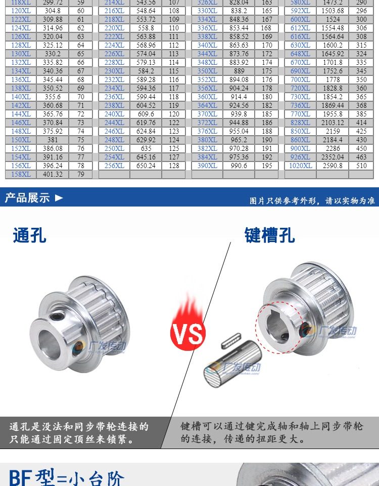- Xl15 зуб BF Тип (маленький стол) Ширина слота 11 отверстий 8
