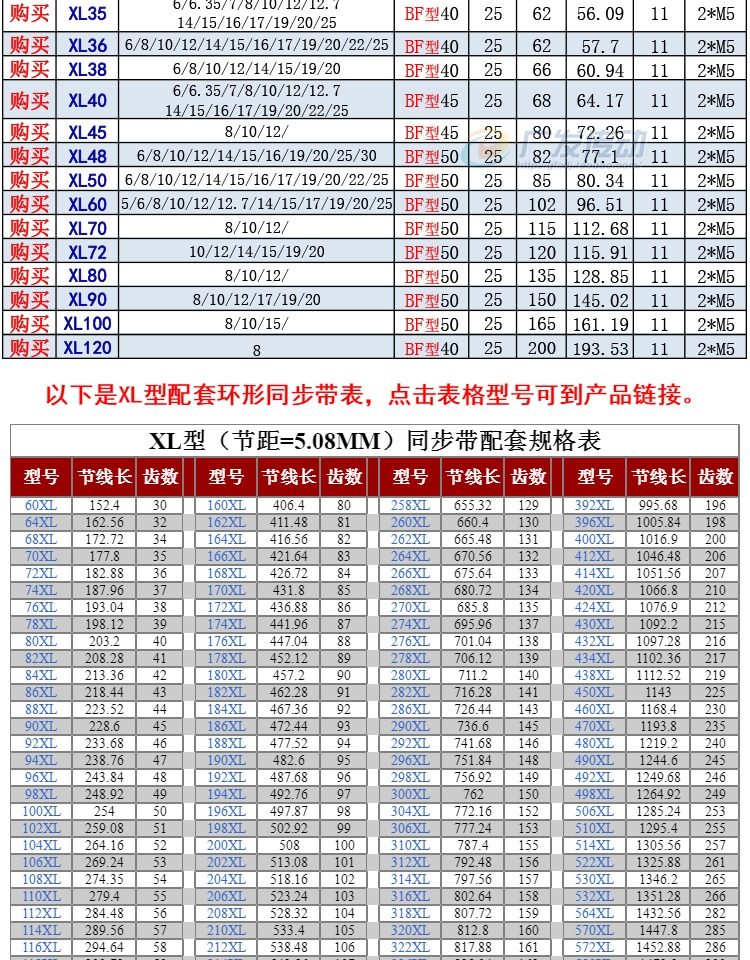- XL15 зуб K Тип (большая таблица) Ширина слота 11 отверстий 12.7