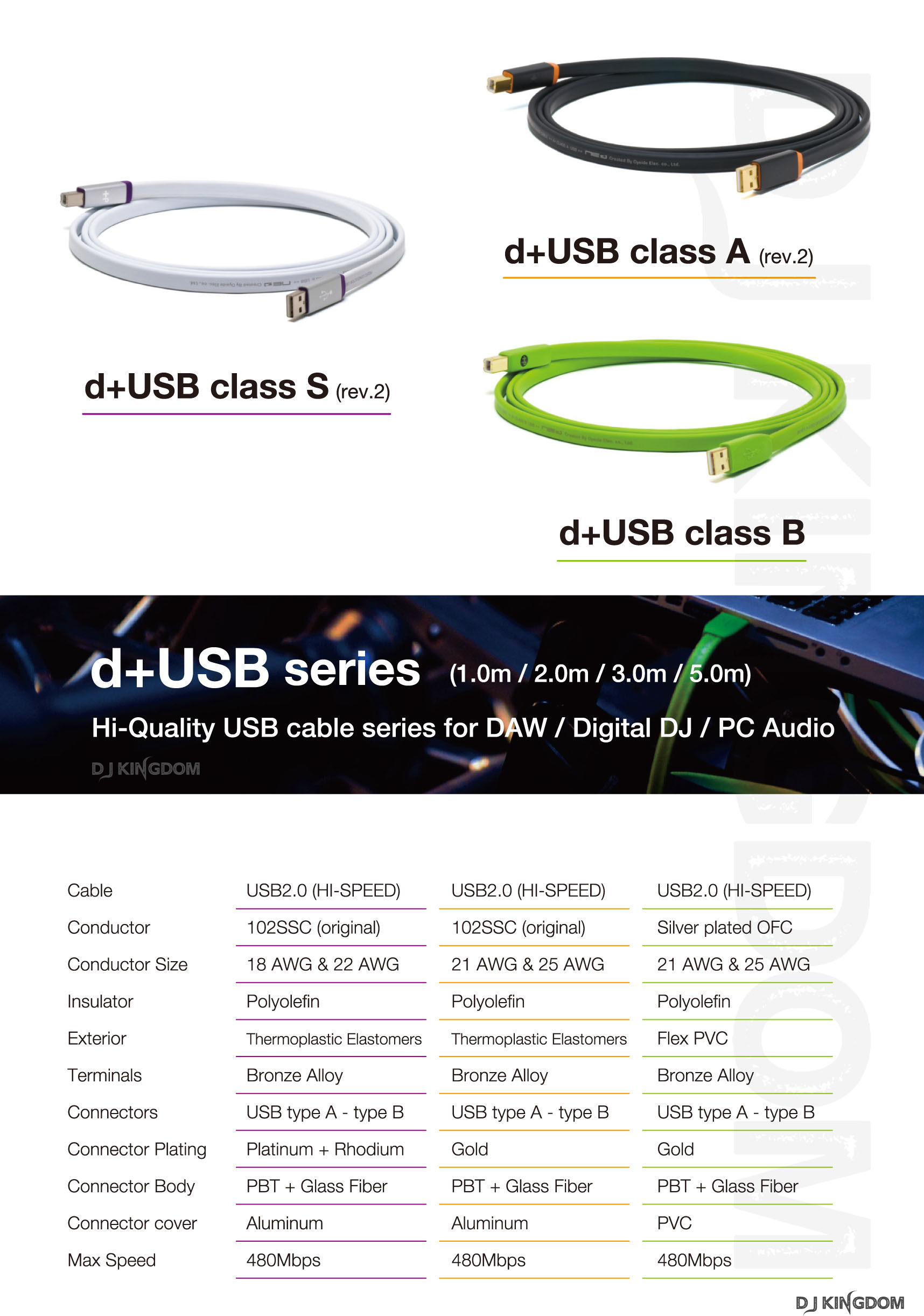 Длина: 1m, 2m, 3MЦвет: USB class A, USB class S, USB class B