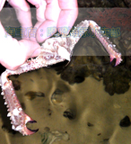 Достаточно странные и редкие виды крабов,Плоскогубцы непропорционально длинные, но ножки странно короткие., Любит зарыться наполовину в песок, не большой, очень медленно передвигается. Он питается мелкими насекомыми в песке и не представляет угрозы для мелких рыбок.
