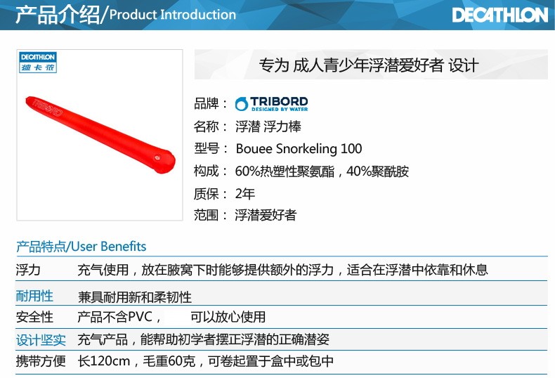 Палка плавучести Decathlon плавание снаряжение для подводного плавания вода верх подводное плавание детские Плавучая игрушка надувная плавающая палка OVS