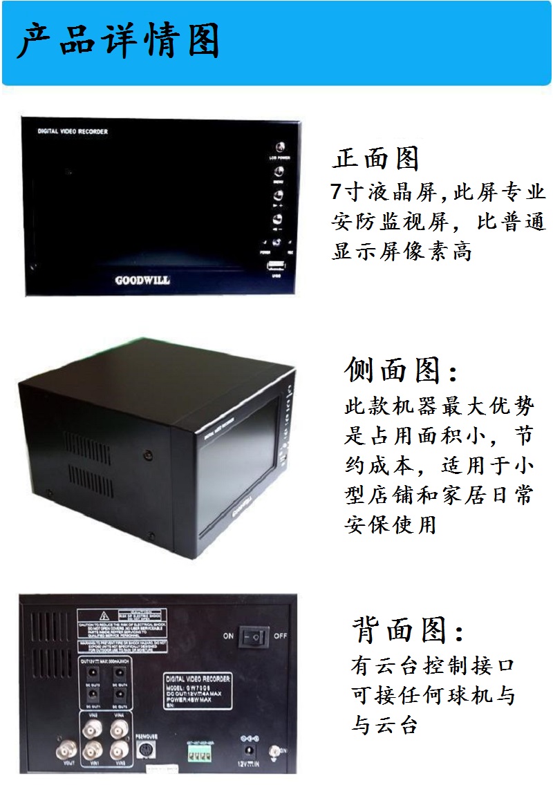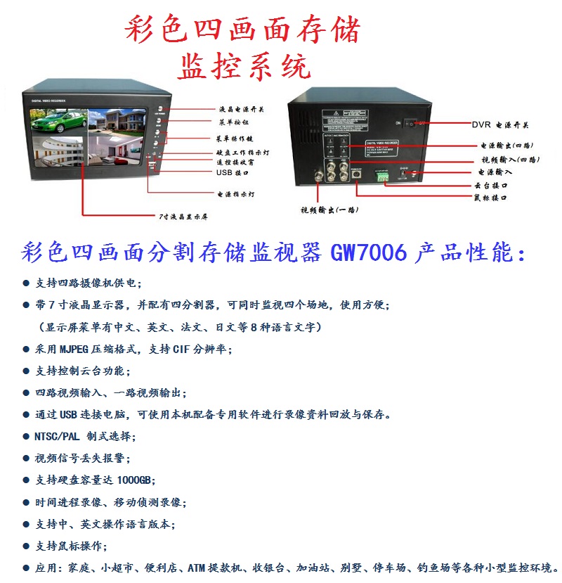Области применения: Семья, небольшой супермаркет, магазин, удобство, банкомат, заправочная станция, вилла, гараж, рыболовное поле, парковка и т. Д. Небольшая среда мониторинга.