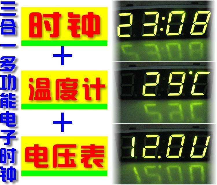 Цифровая трубка электронные часы светодиодные три в одном электронном часовом времени + температура + напряжение базовый версия