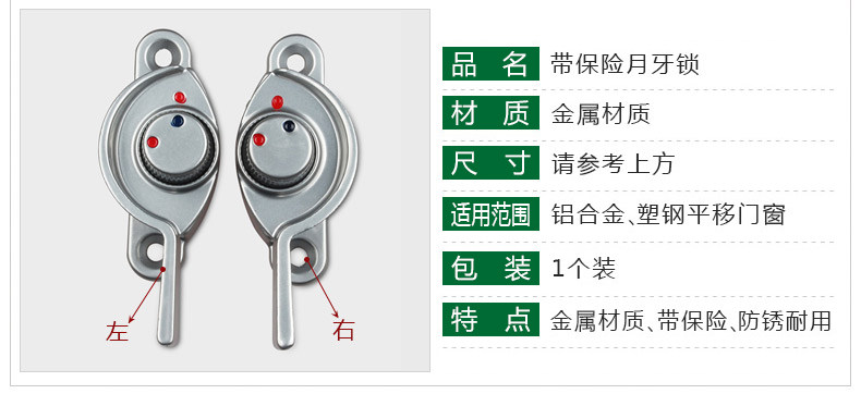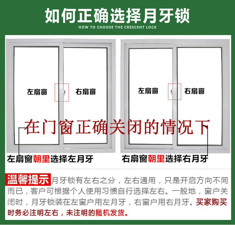Алюминий Легированная Пластиковая Сталь дверь окно Страхование полумесяца Замок полумесяца окно Бытовой замок с застежкой дверь окно Замок безопасности в форме полумесяца