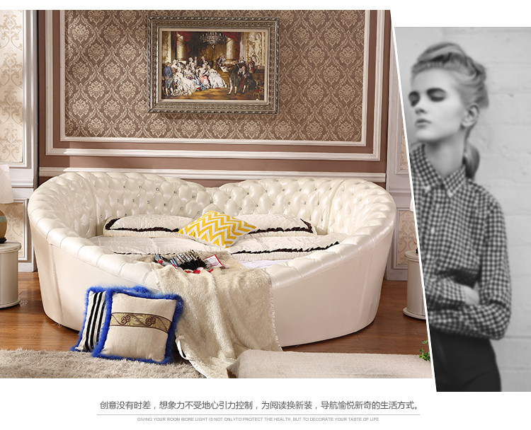 Кровать в форме сердца Кровать в европейском стиле круглая кровать детские Кровать Ткань Кровать Мягкая Кровать Корейская Двуспальная Кровать Татами Кожаная Кровать Брачная Кровать