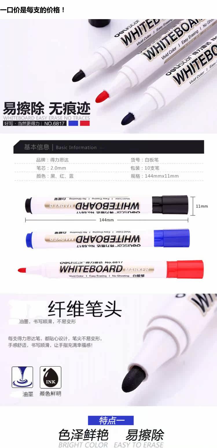 Deli 6817. белый панель Водостойкость белый панель Pen 2mm Show панель Ручка белый панель Писать перо