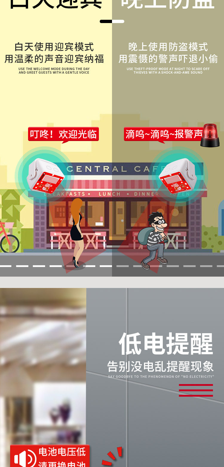 Добро пожаловать в сенсор дверь Индукционный магазин дверь колокол дверь Добро пожаловать домой красный Внешняя противоугонная сигнализация