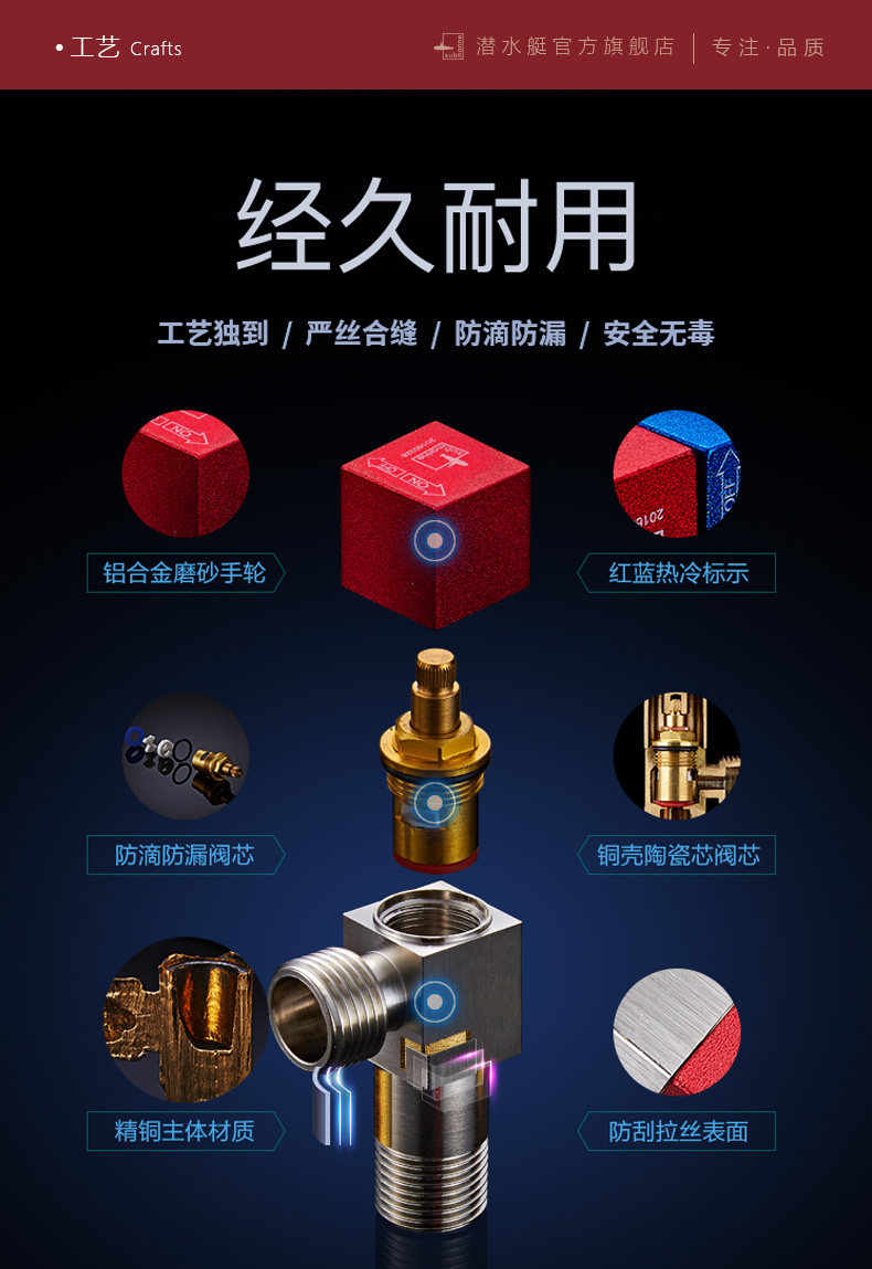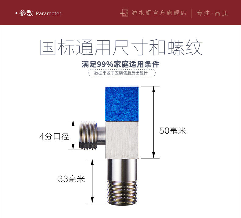 Подводная лодка угловой клапан горячей и холодной воды универсальный треугольный клапан тонкий медный провод удлинение утепленный Водный клапан F301 / 302