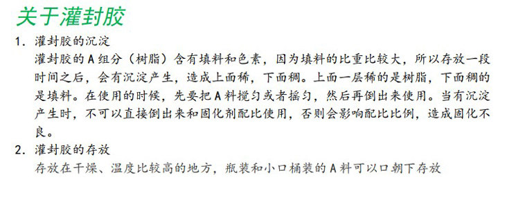 Перед использованием,AМатериал открывается, вся бочка равномерно перемешивается, затем выливается и отвердитель в соответствии сA\BСоотношение двух компонентов необходимо взвесить и перемешать, а затем полностью перемешать перед использованием. Для продуктов с большим объемом заливки рекомендуется применять второй раз. верх Метод заливки.
