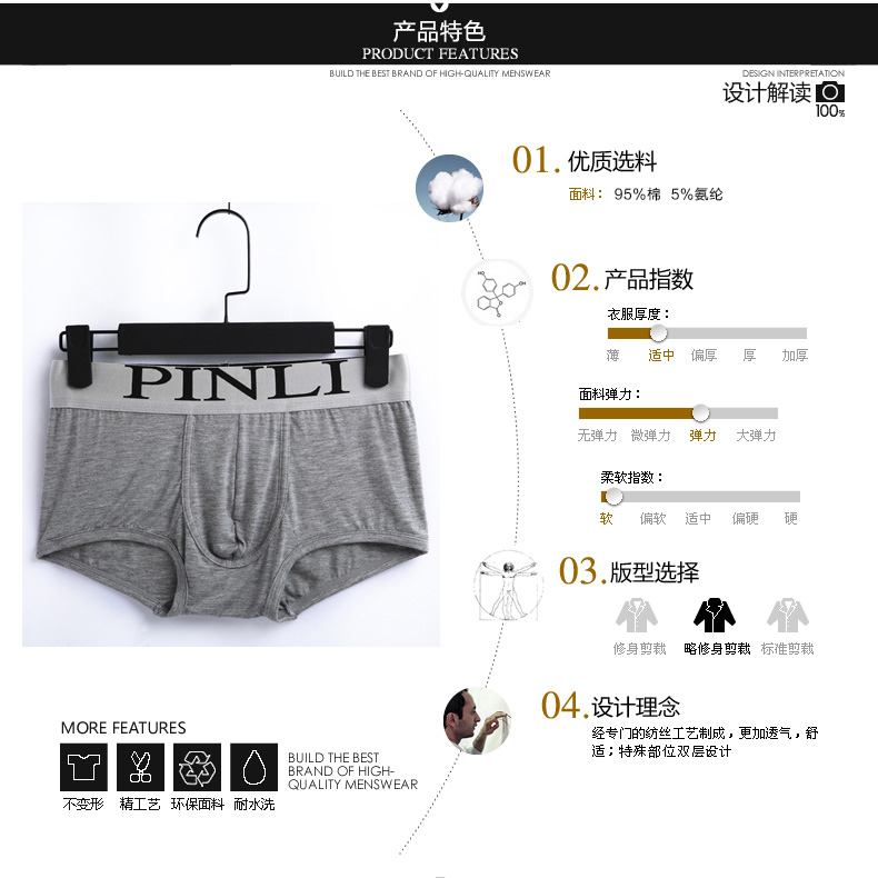 【1. полосатый 79,2 полосатый 99,3 полосатый 129.】Pinli Pinpin нижнее белье плоский угол мужской Нижнее белье мягкий воздухопроницаемый