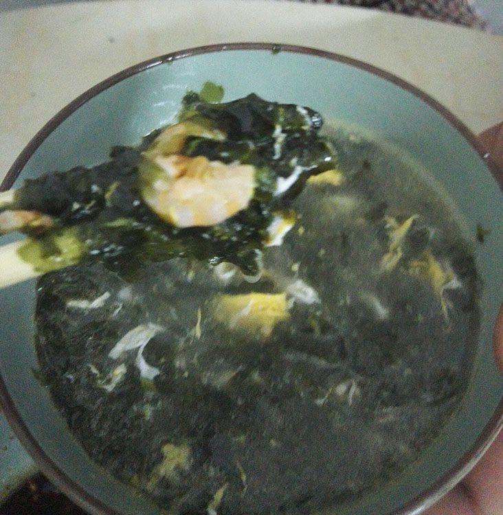 Laver Crimp Egg Soup изготовлен из яиц креветок морских водорослей из моего дома. Это действительно нежно и вкусно.
