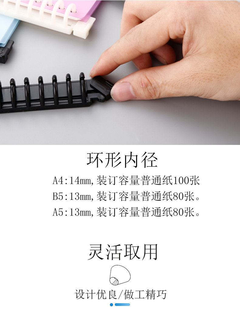 Большая пластиковая петля MASH A4 / A5 / B5 Punch 26 отверстий Данные файла Повторите открытое и съемное кольцо