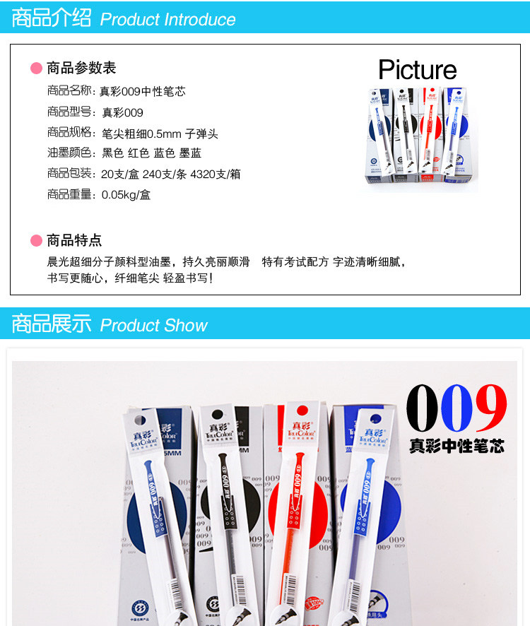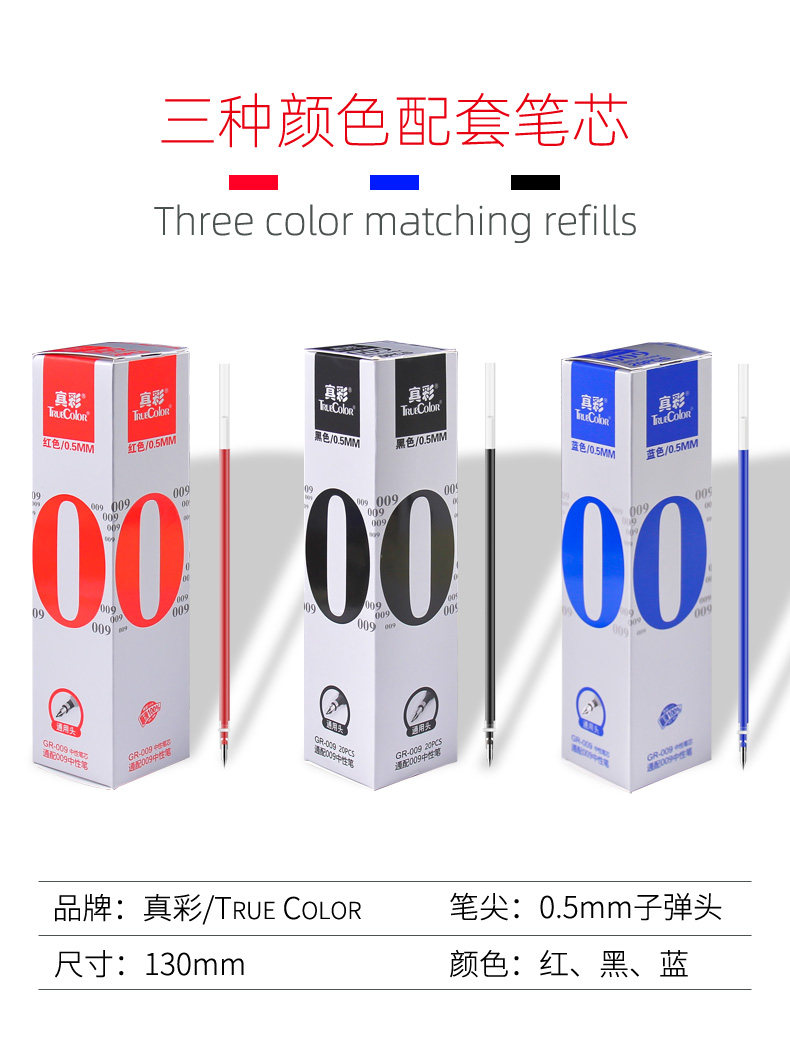 Настоящий цвет GR-009 Нейтрофильная ядра пулевая ручки воды 0,5 мм черный красный синий Оборудование для 20 кусочков ядра