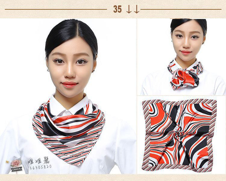 Квалифицированные шарфы Bank Bank Flights Textivant Hotel Официант Работа Бизнес Профессиональный Шелковый шарф Маленький квадратный полотенце женщины шарф