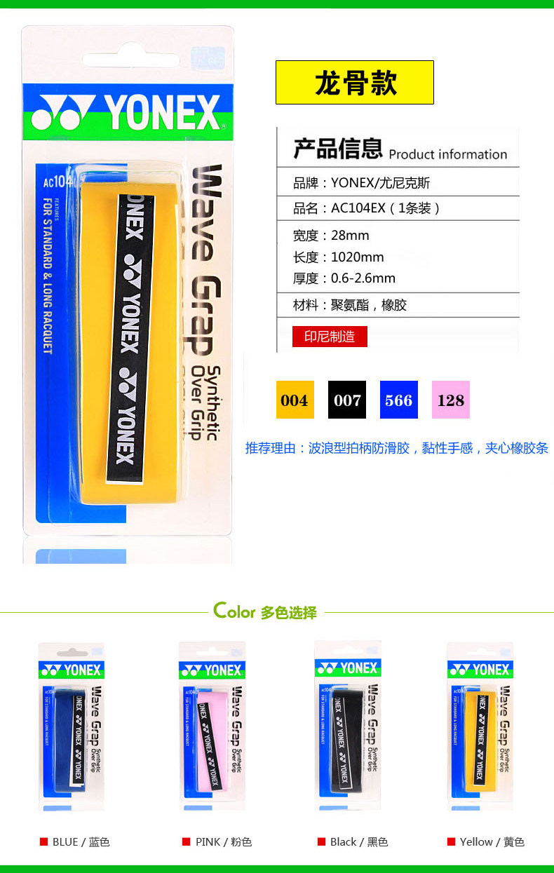 YONEX Eunks AC102 / AC104 / AC130 Тонкомальный клей Драконь Резина оригинал Одна карта имеет 3 полосатый