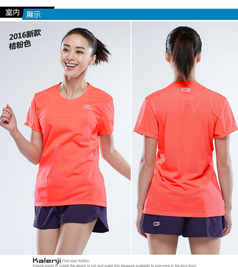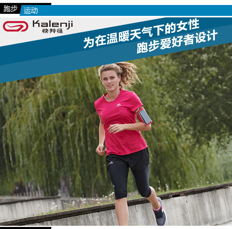 Декатлон стиль разлетаться, как горячие пирожки синий Торговая женщина воздухопроницаемый короткий рукав Спортивная футболка Многоцветная бегущая одежда Kalenji