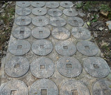 Камень резьба древняя монета синий каменный котел копия Древний древний поколение Монеты древние монеты мостовой камень рельеф панель Кирпичная дорога вдоль камня