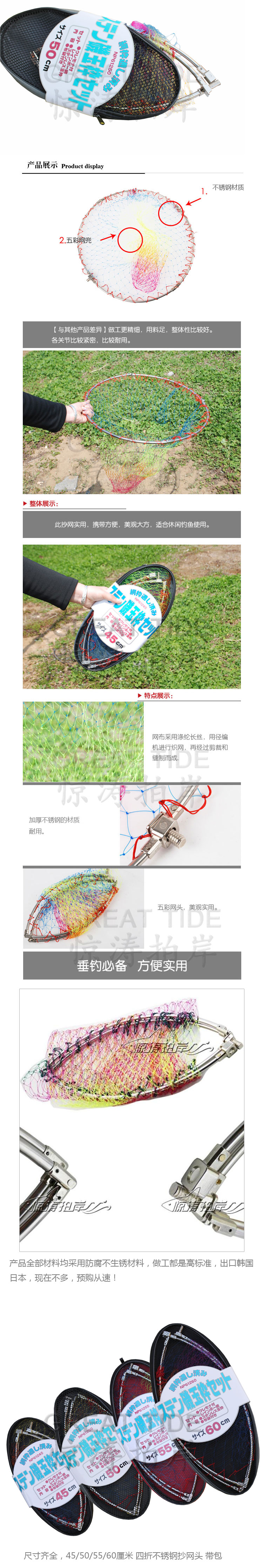 Головка рыболовной сети Haiji 4-кратная поясная сетка из нержавеющей стали пакет Пресноводные рыболовные снасти из нейлона с крупной сеткой для рыбалки оригинал 55cm