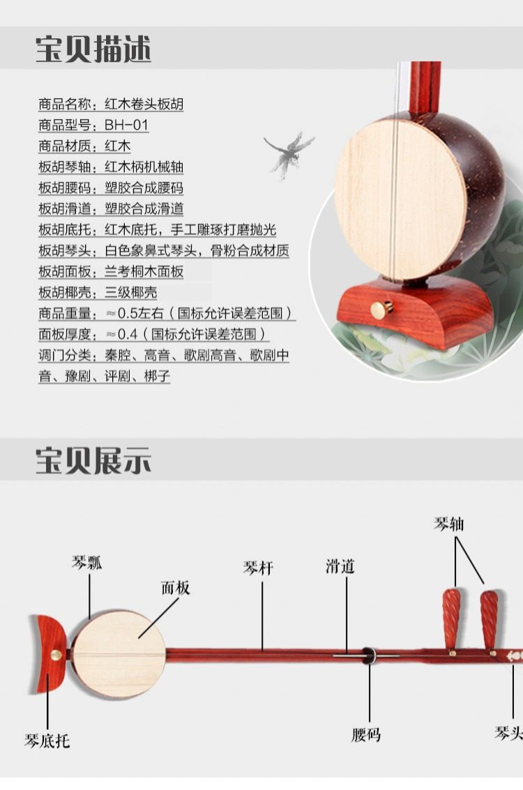 Профессионализм ручная работа Делать национальные струнные инструменты красный Деревянная кудрявая голова Опера Хэнань Опера Цинь Опера высокая Тон панель Холдинга