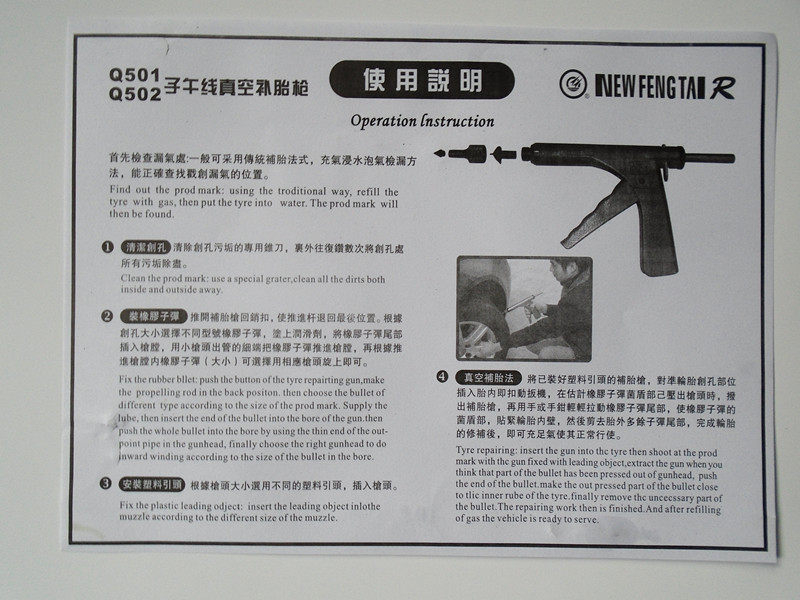 4) Метод пополнения вакуумных шин: пистолет для пополнения шин, который был установлен с пластиковой головкой, вставляется в шину в шину для перемещения триггера. При оценке экрана бактерий резины пули распределяется дополнение шин и дополнение шины из добавки шин. Аккуратно потяните хвост резиновой пули с зажимом руки или рук, чтобы сделать грибный щит резиновой пули, закрыть внутреннюю стену шины, а затем отрезать хвост избытка Избыточная пуля за пределами шины, чтобы завершить шину. Упражнение.