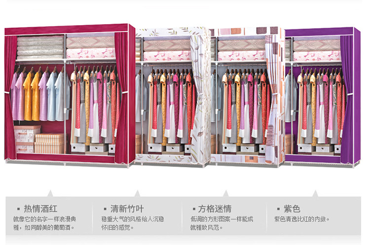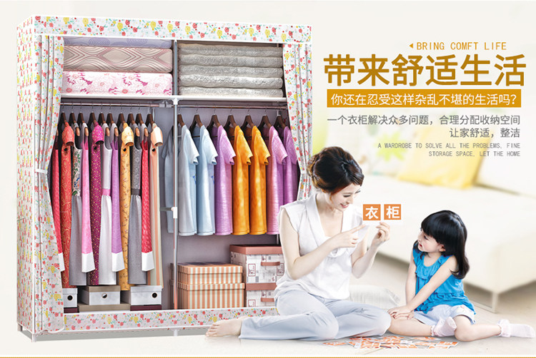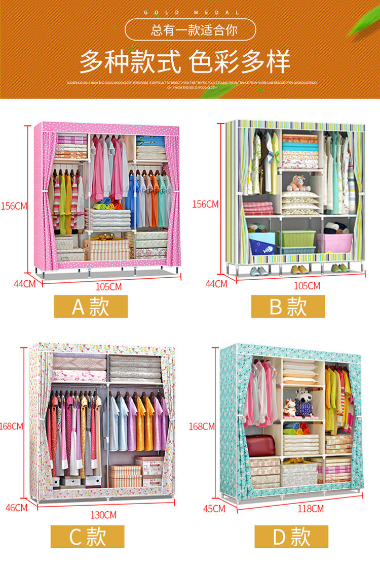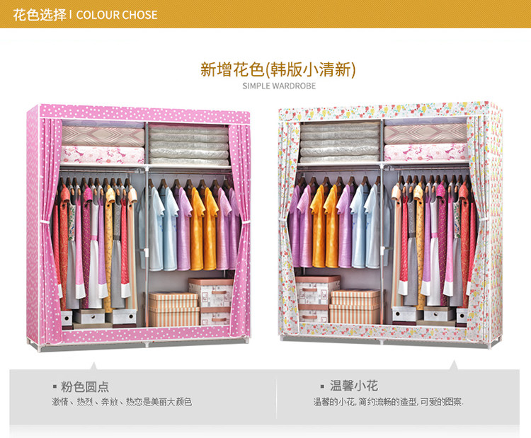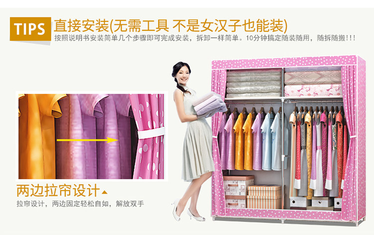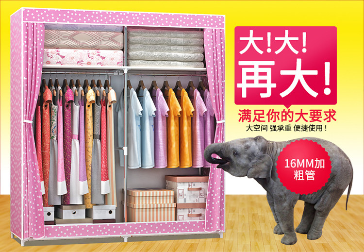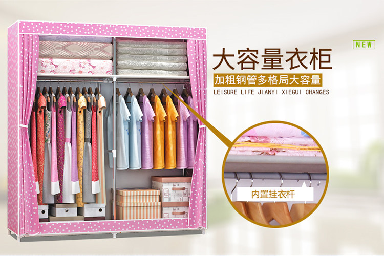Простой шкаф для дома для дома для спальни шкаф для шкафа Bold армированная аренда поколение Простая стальная труба хранения одежды висит