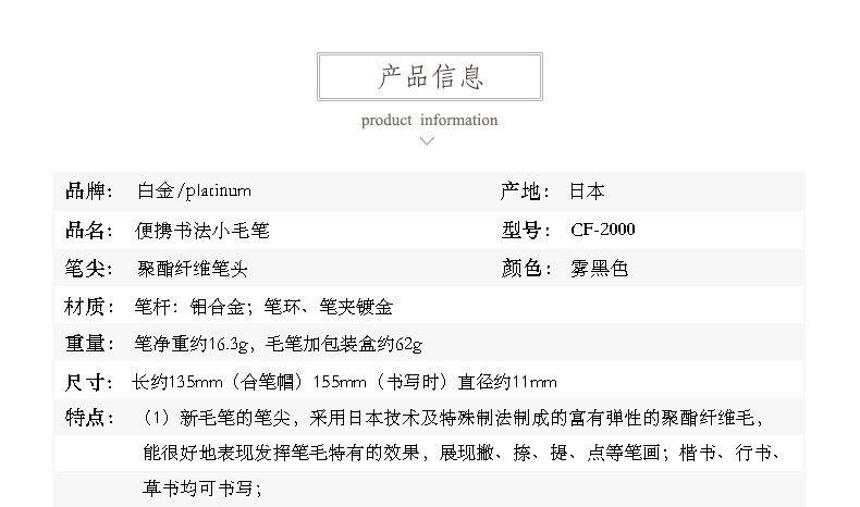 Японская платина белый Золота зовут Фрак факт трахает CF-2000 Портативные каллиграфические карандаши воды Pinclabory маленькая запись не может чернила текстовая книга ручка кисть