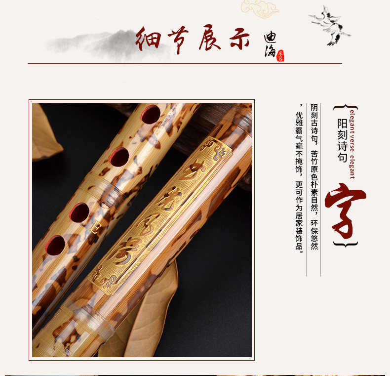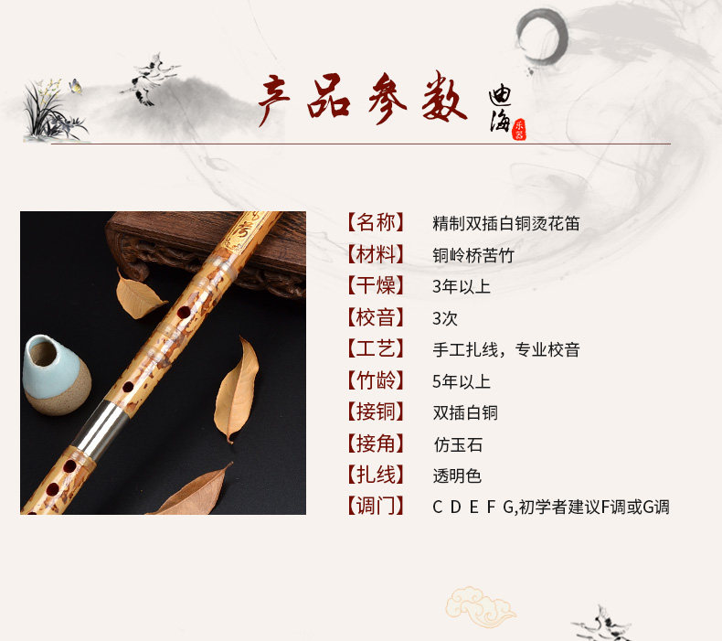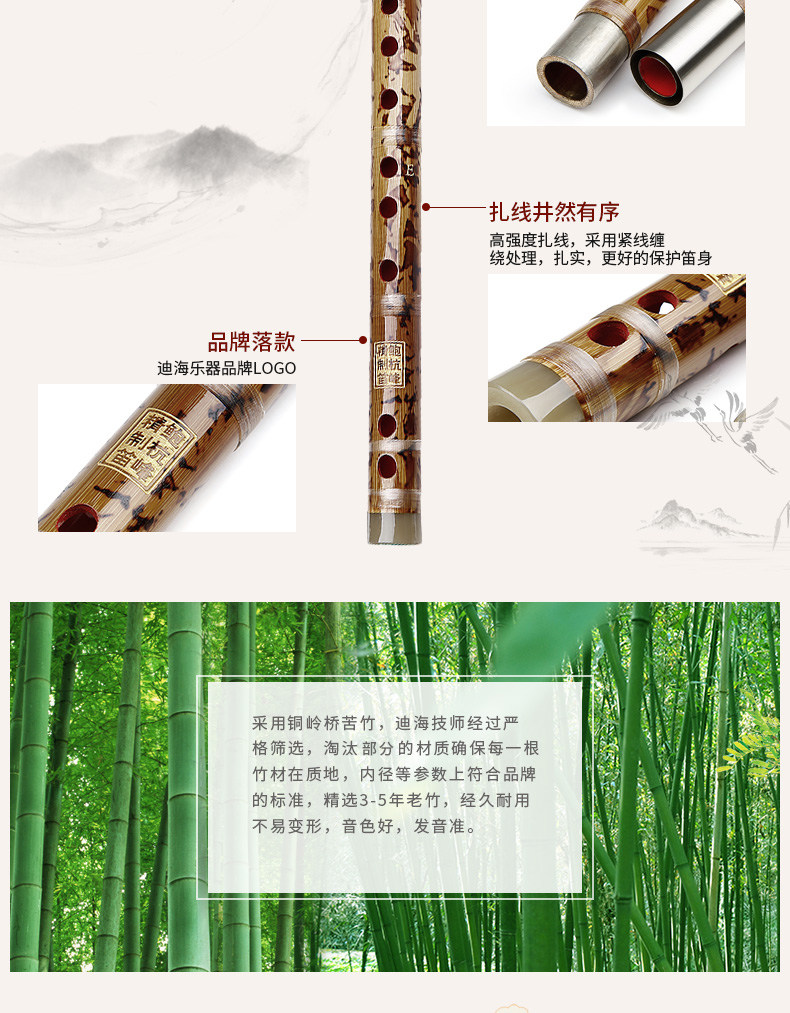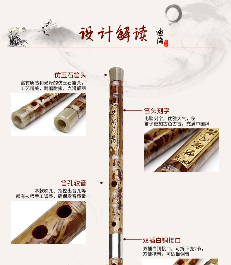Dihai Bitter Bamboo Flute Bamboo Flute Junior High School Professional Ememance Double INSERTION белый Медный горячий цветок