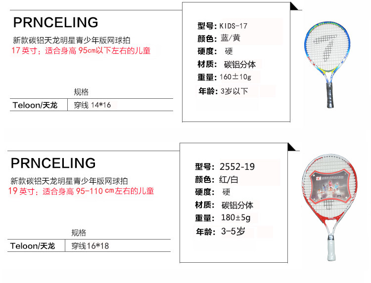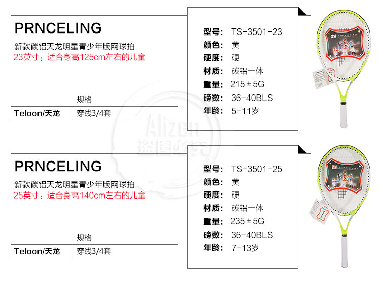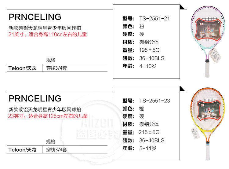Teloon Tianlong детские Короткие чистые теннисные ракетки 21/23/25 дюймов мужские и женские Детские дети начинают изучать теннисные выстрелы