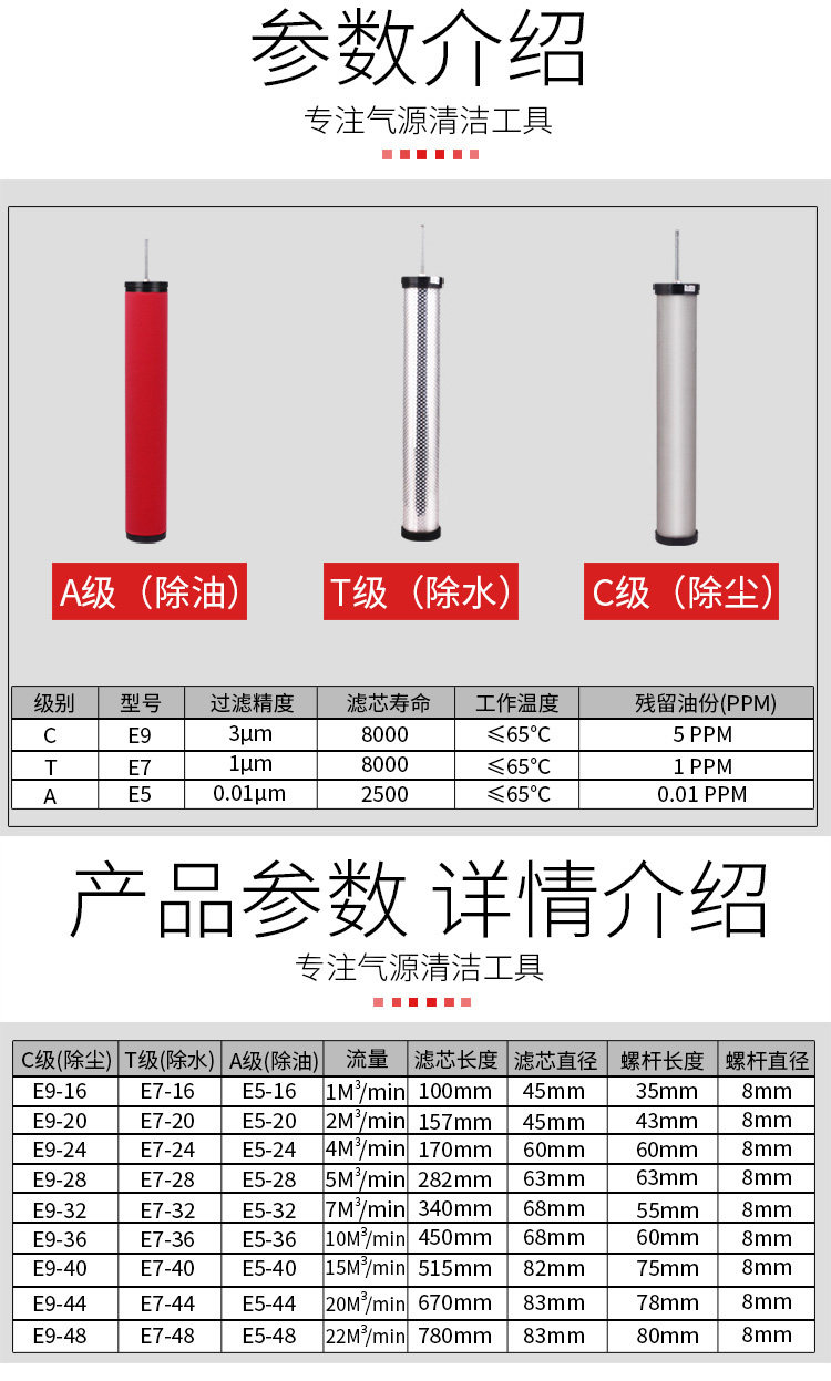 Хэнксон, США стиль E5 E7 E9 Воздушный компрессор Air Precision Filter Filter Core сепаратор для сепаратора