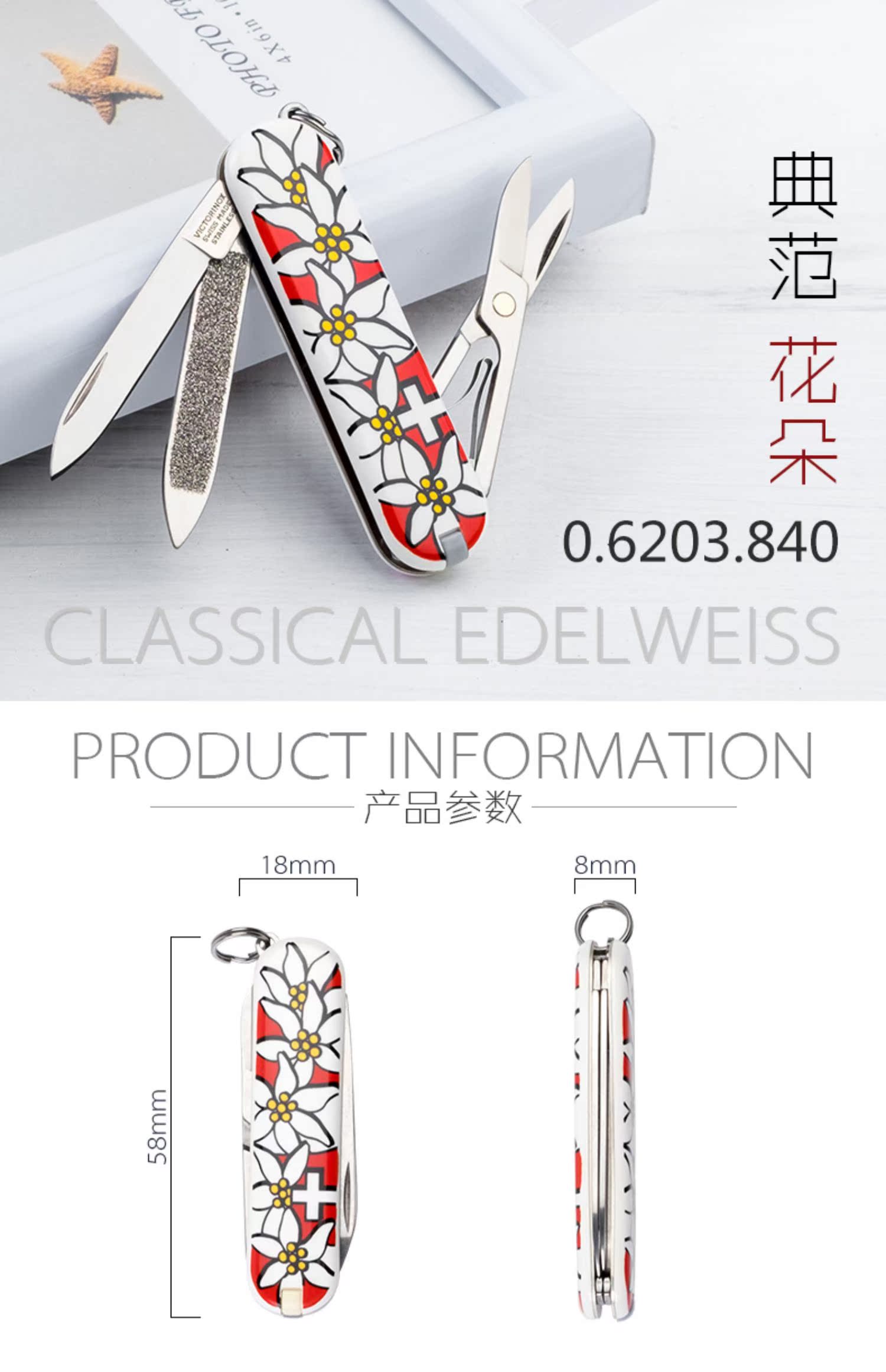 Виккерс Швейцарский армейский нож 58 мм Mini классический Фанхуа 0.6203.840 Женский нож самообороны в оригинальной упаковке импорт