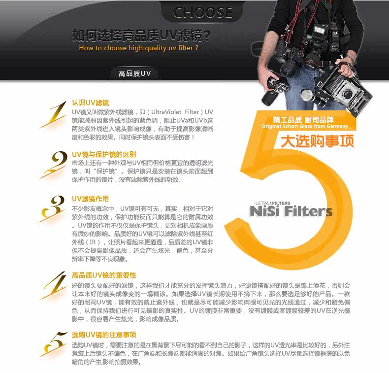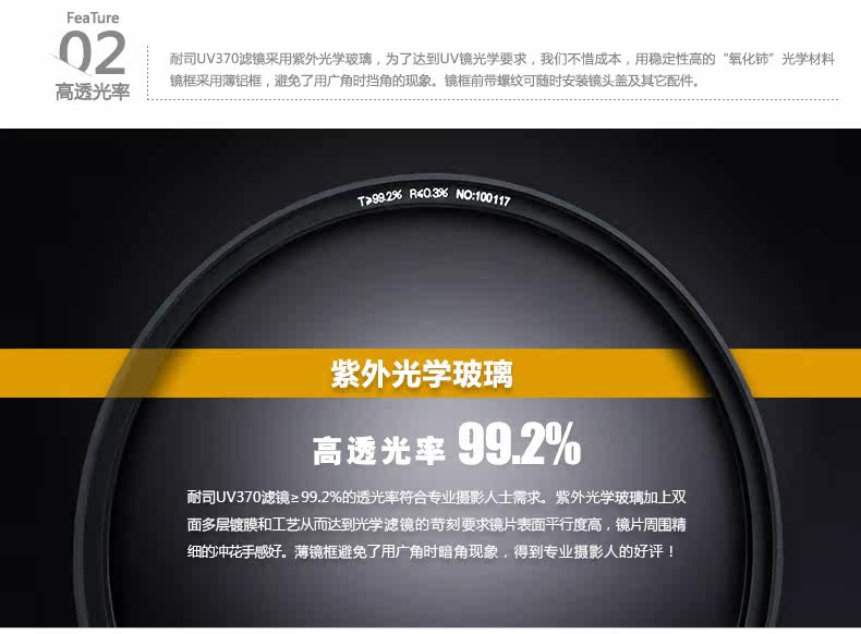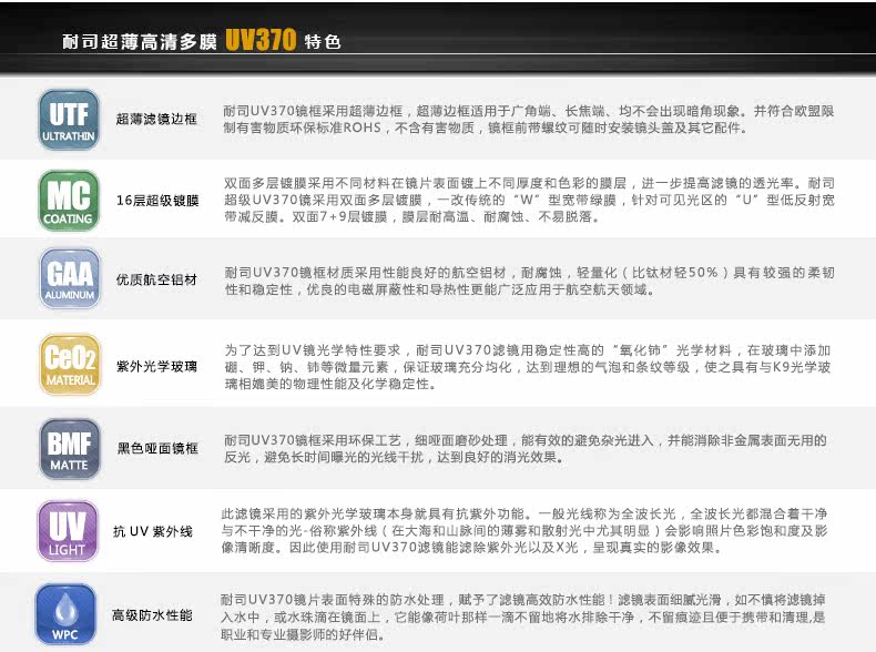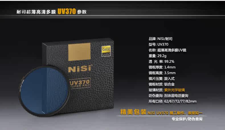 Размер объектива: 62mm, 67mm, 72mm, 77mm, 82mmЦвет: Двустороннее 18-слойное антибликовое покрытие с твердой поверхностью