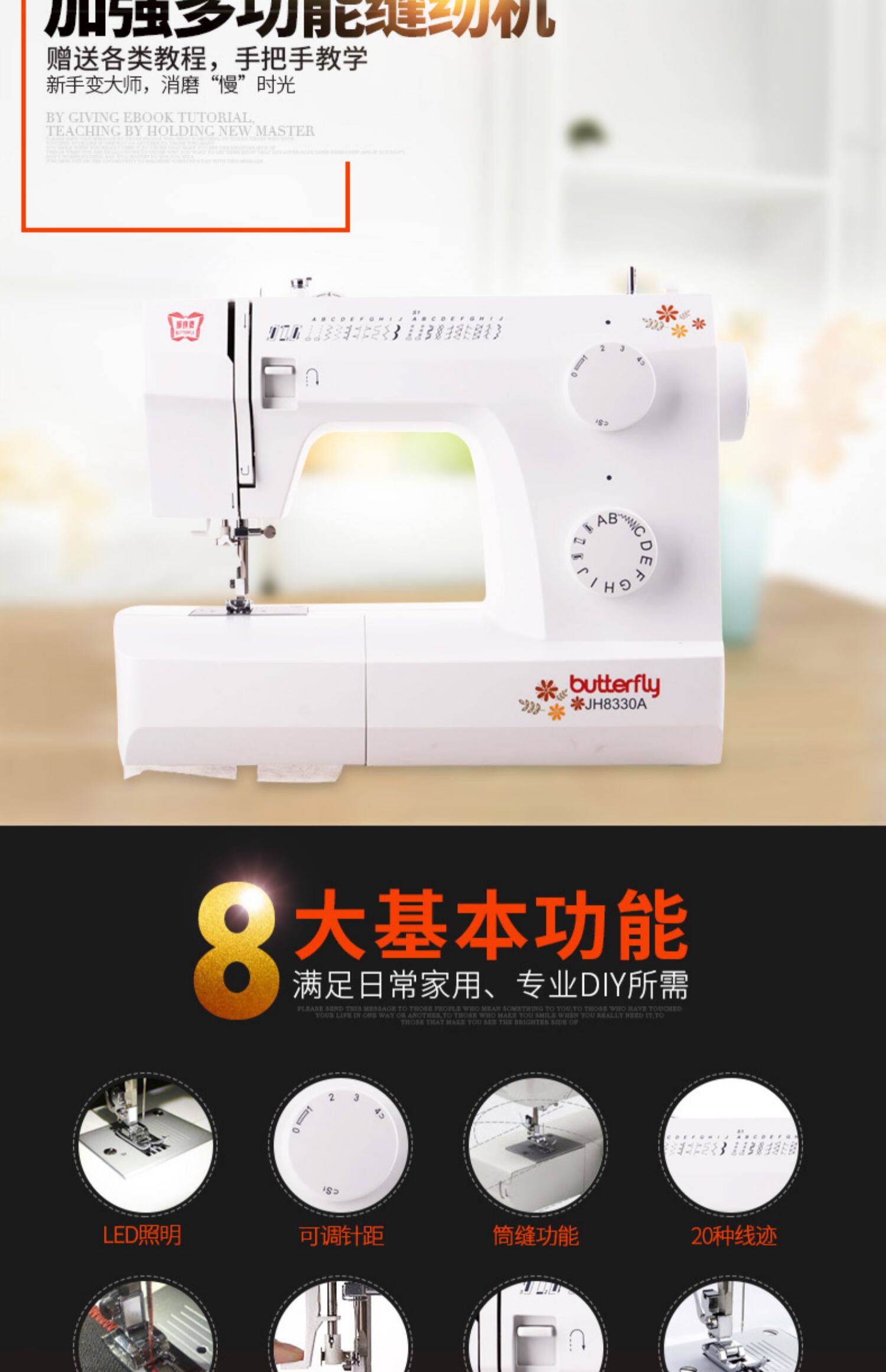 Бантики Швейная машина 8330A Home полностью автоматическая Электрическая многофункциональная функция толстая Замок Домашний настольный швейная машина