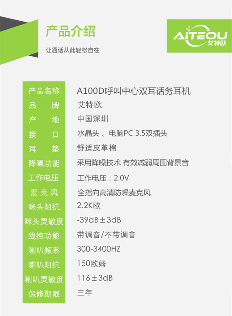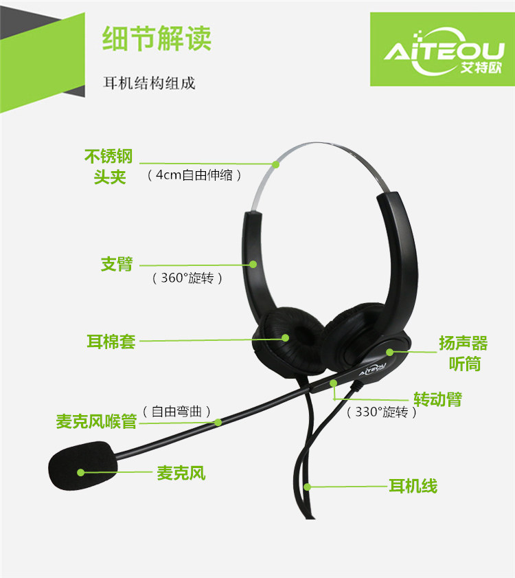 AITO A100D Двойная гарнитура телефона Compene Customerist Cisco Avaya Phone Hearset