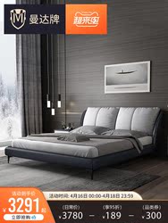 Manda Nordic настоящее поколение Минималист из натуральной кожи Кровать 1.51.8м двуспальная кровать мягкая пакет Кровать сейчас поколение Простая кожаная кровать для спальни