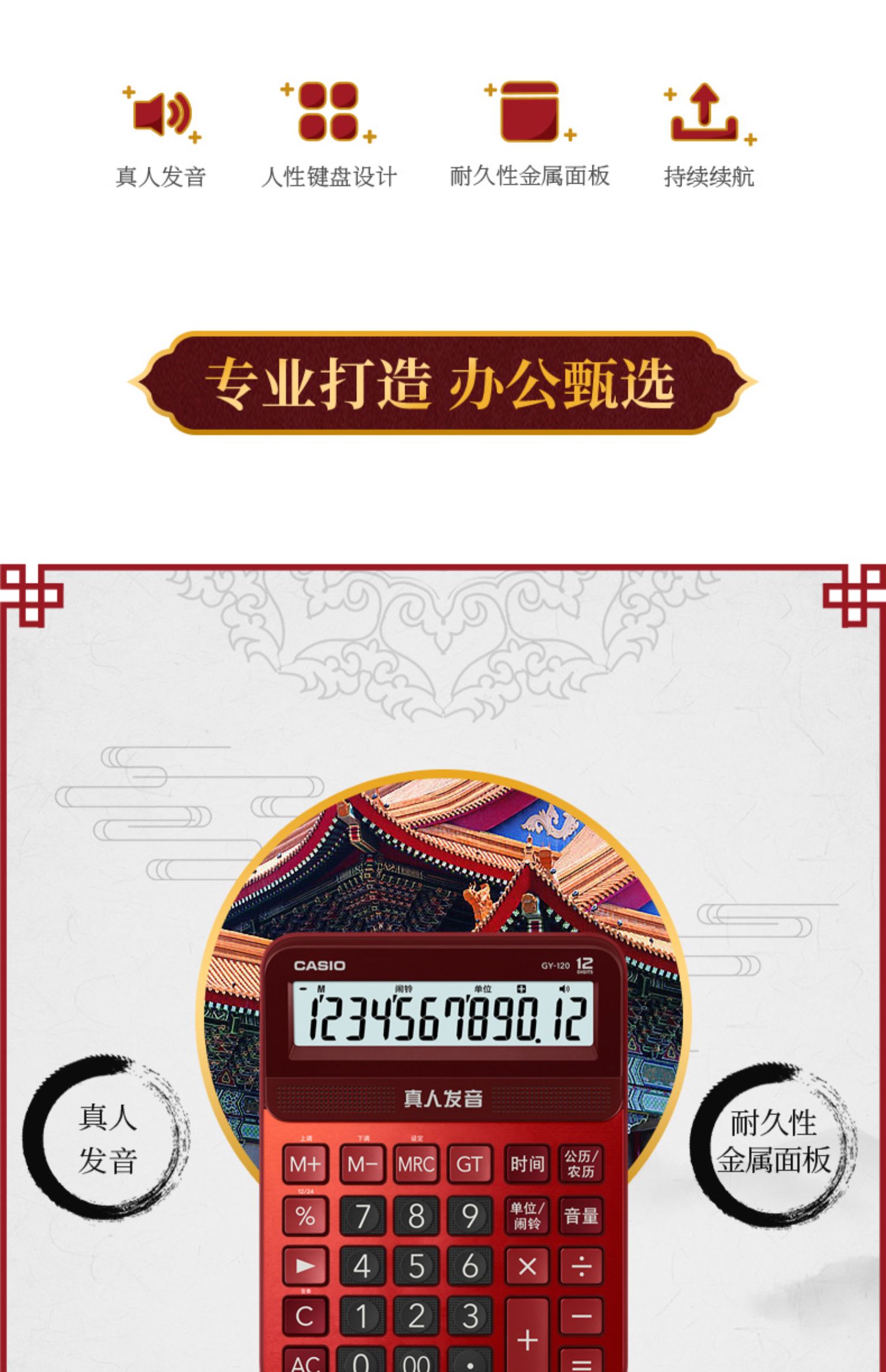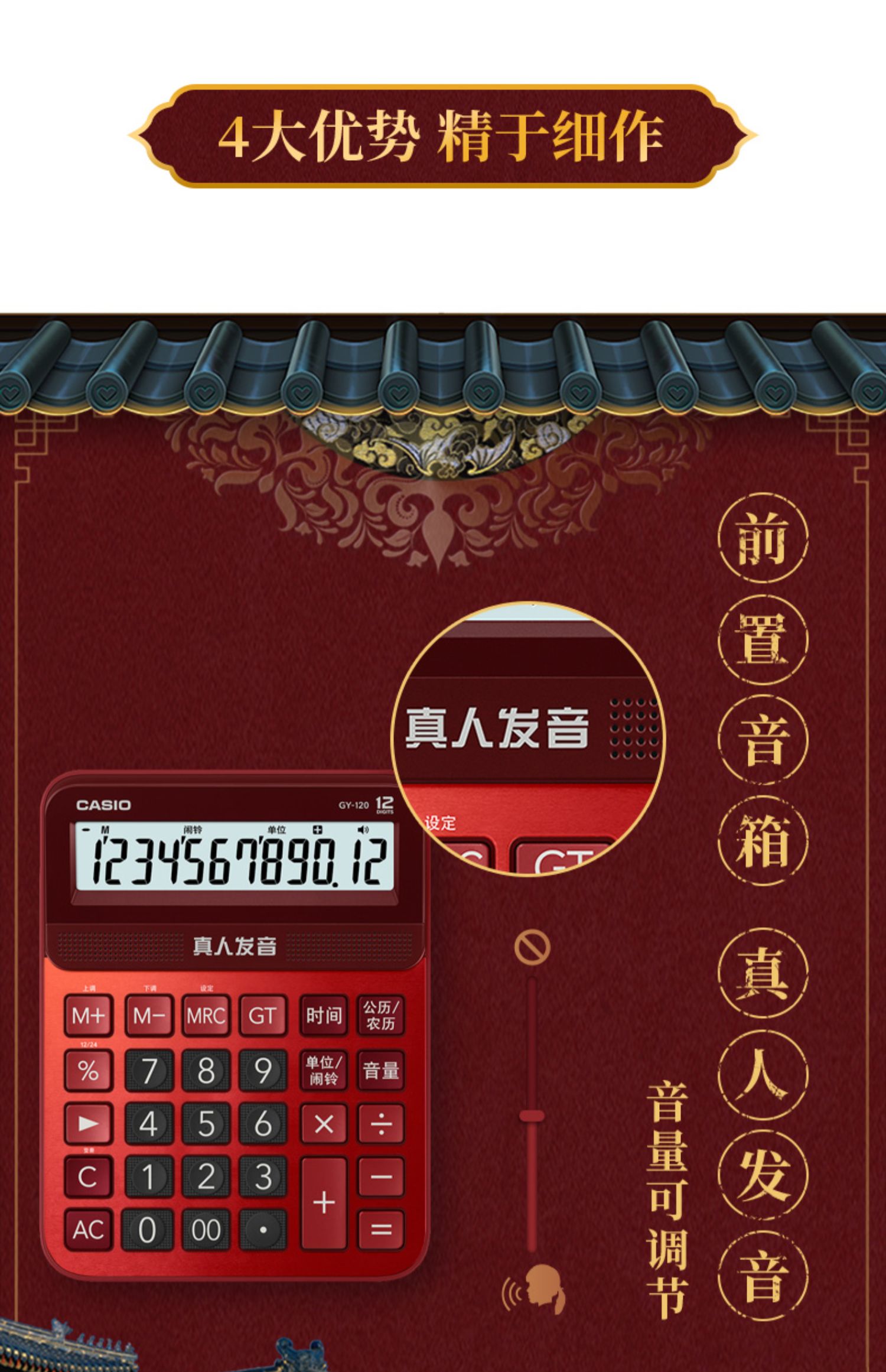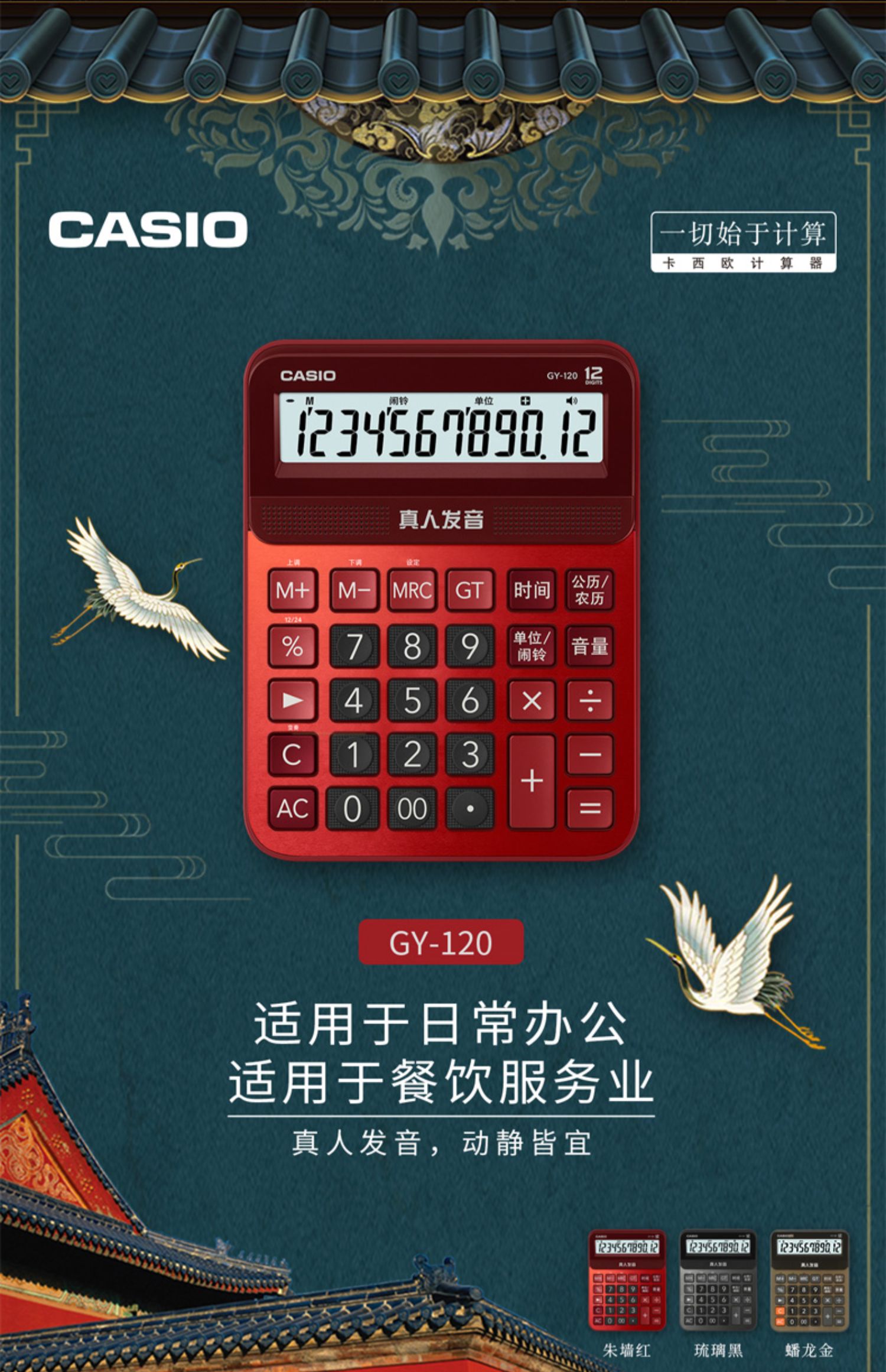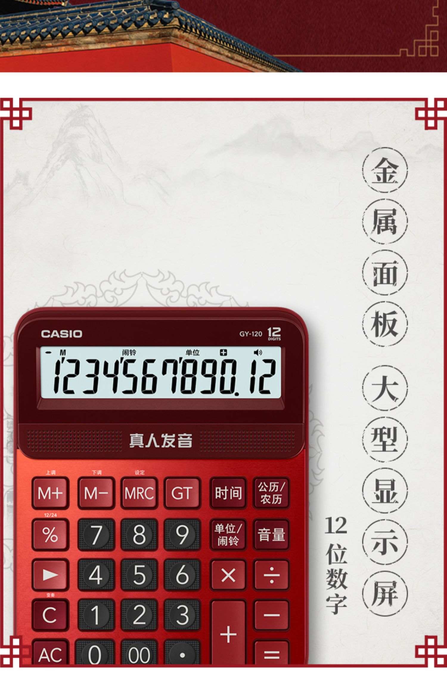 Казио / казио голосовой калькулятор GY-120 офис большой кнопка Бизнес-офис сети красный Канцтовары большой экран реальные люди произношение музыкальный компьютер