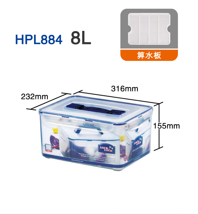 Весело с застежкой весело с застежкой HPL884 Ручка в форме 8.0L прямоугольная большая большая коробка консервации пластиковая запечатанная коробка для хранения