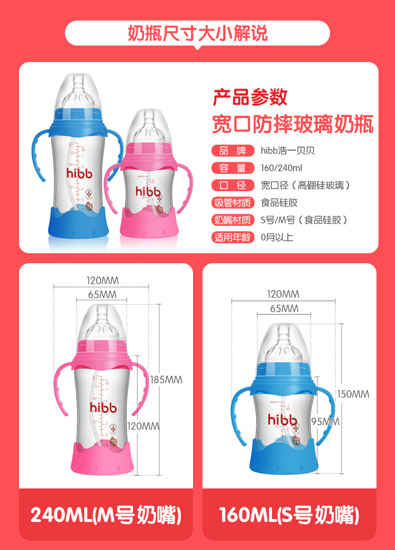Бутылочное стекло на младенца Широкий калибр анти падающие защитные покрытия на один год детские на младенца 6 месяцев 1 год 2 года 3 года верх