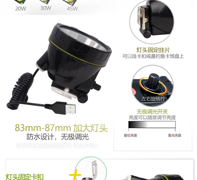 45W синий Светлая рыбалка свет Голова супер ярко без Полярное сокровище Light Night Fishing Head USB Зарядка сокровища 5 В Внешний пикап свет голова