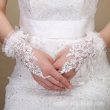 Белый короткий новый мама перчатки Корейский стиль новая коллекция Лиственный индекс пайетки Ремень высококачественный Свадебное кружево без Кружево перчатки