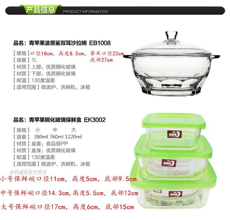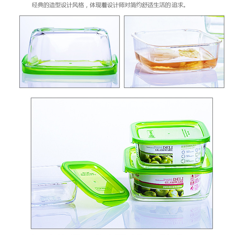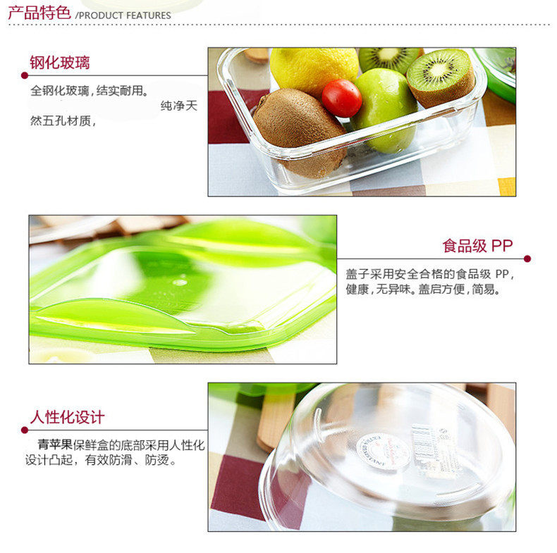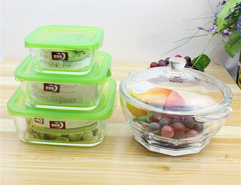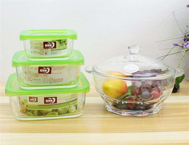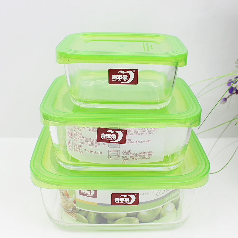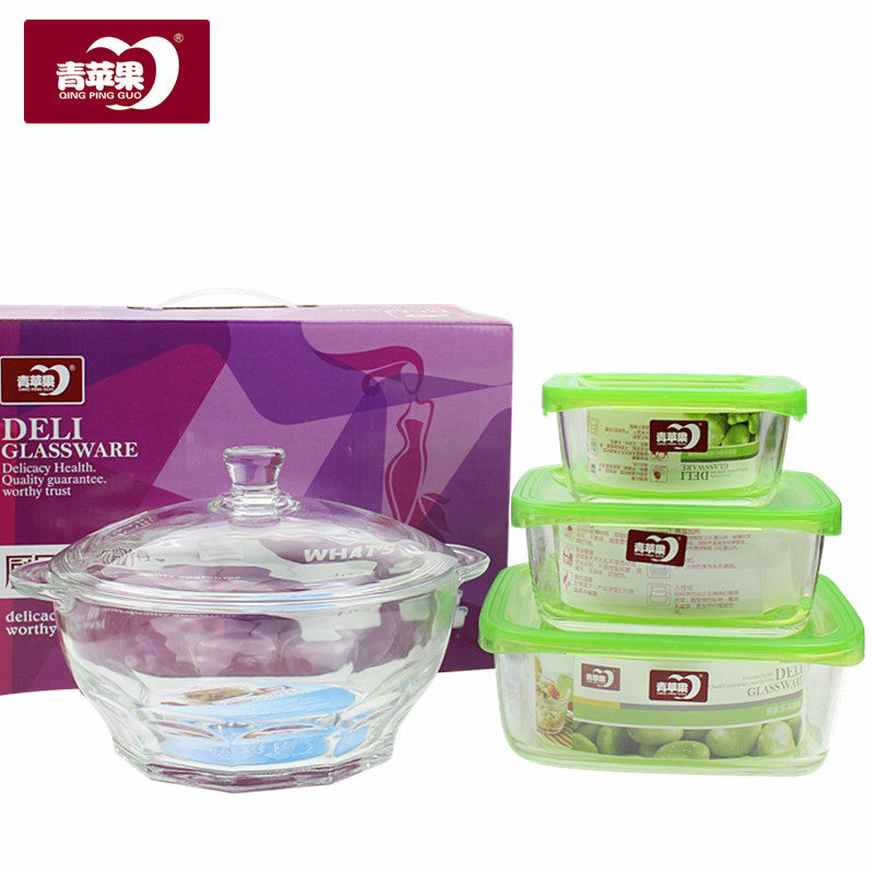 Бесплатная доставка по китаю Зеленое яблоко полностью Закаленное стекло 4 предмета 3 ящика для свежих продуктов + 1 шт стекло корпус Ланч-бокс с чашей