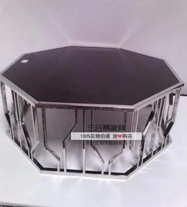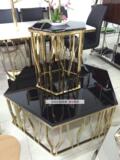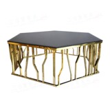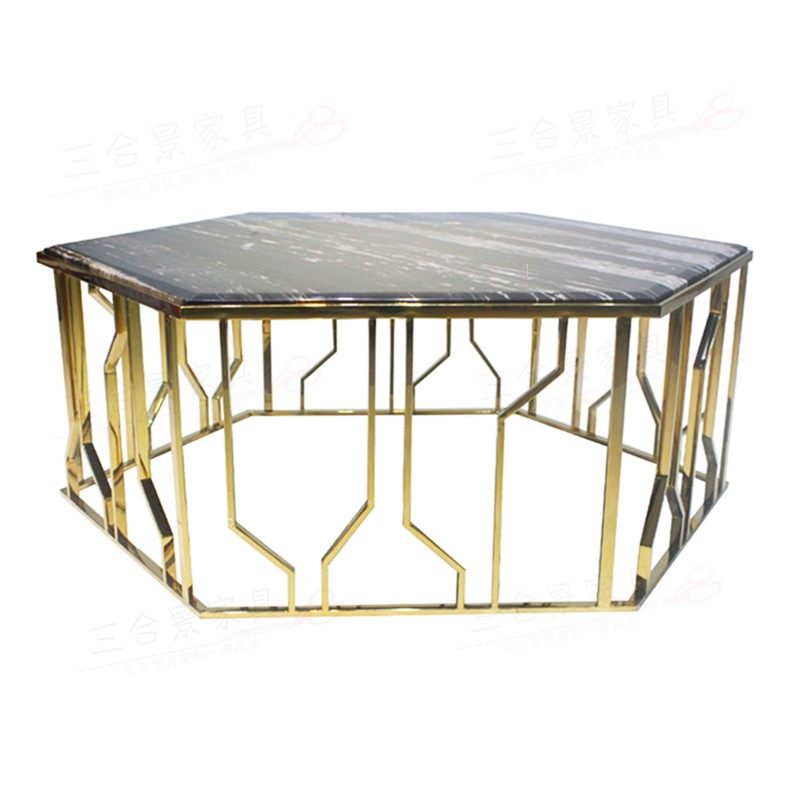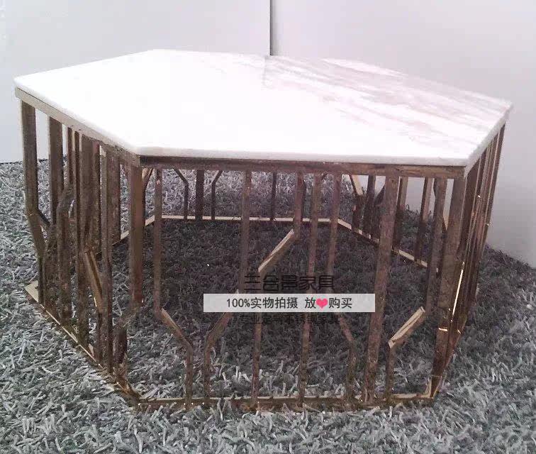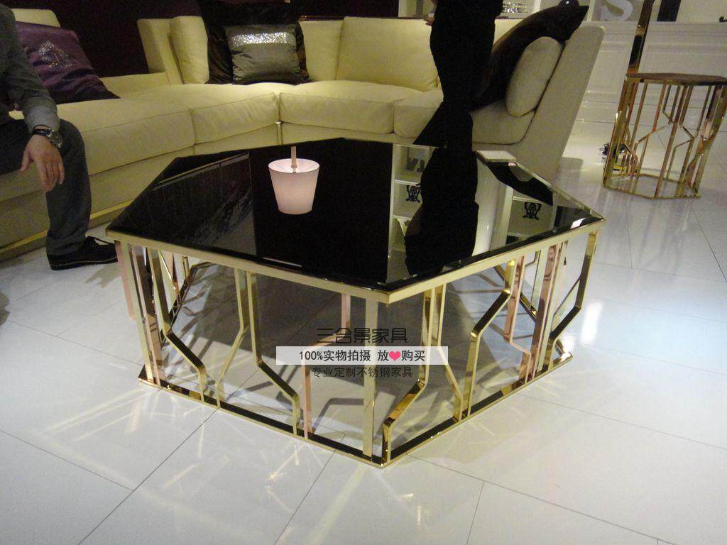 Кофейный столик из нержавеющей стали розового золота из нержавеющей стали Шесть в форме KTV Закаленный стеклянный чай поколение Простая журнальная таблица 006