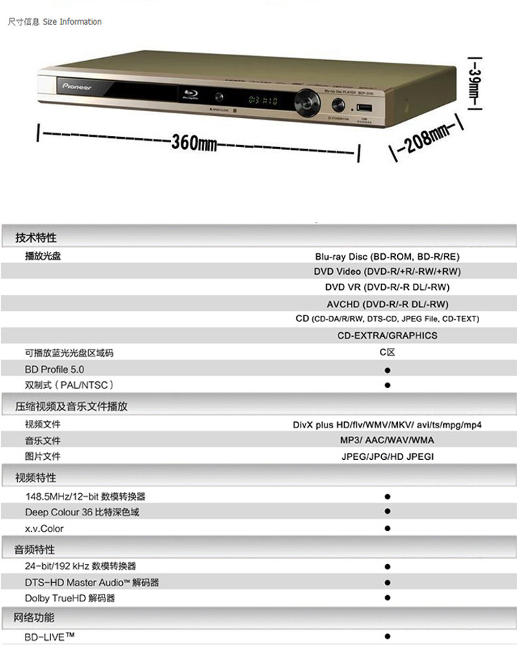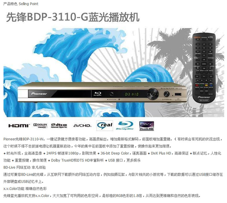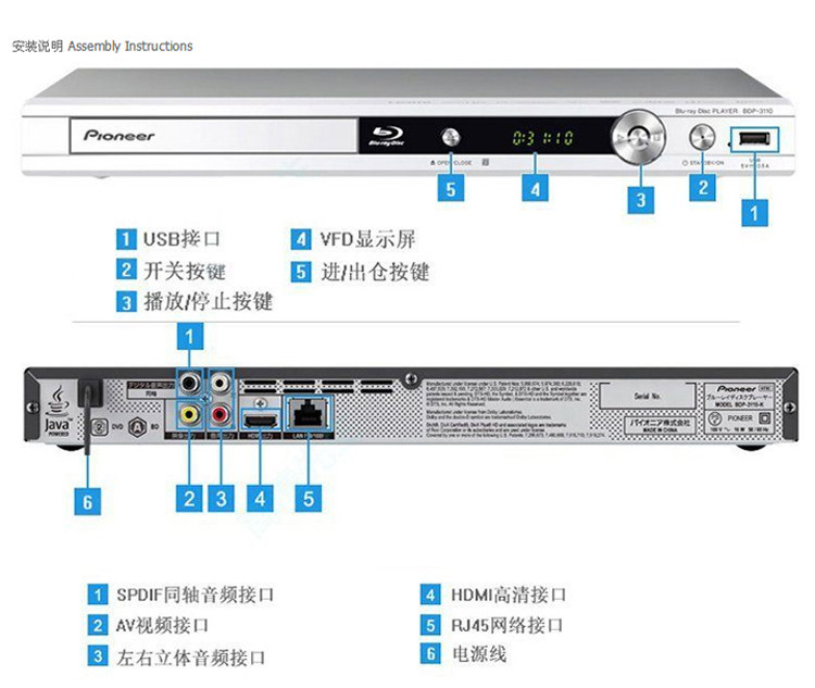 Pioneer / Pioneer BDP-3110 синий Свет высокая Clear DVD проигрыватель видеодисков проигрыватель жестких дисков CD композитный