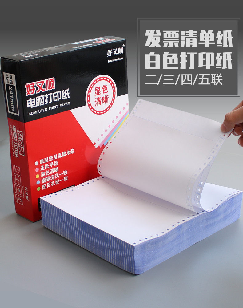 Налоговое бюро Haoyoushun очищено один Бумага для компьютерной печати 241 из двух частей, трех частей, из четырех частей белый Оформление счета-фактуры по налогу на добавленную стоимость, состоящему из двух частей один Целый лист стрелка Типа непрерывная печать на бумаге, пять стыков и три равные части со склада. в подарок товары один