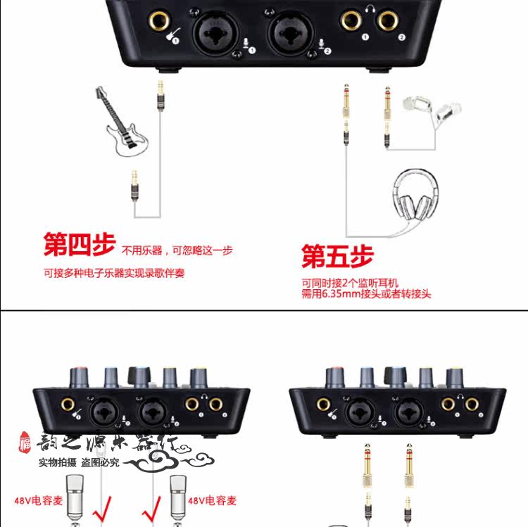 | Звуковая карта поставляется с розеткой | Гитарный вход, вход микрофона * 2, выход для наушников * 2, вывод 3,5 мм, вывод 6,35 мм, музыкальный вход RCA |