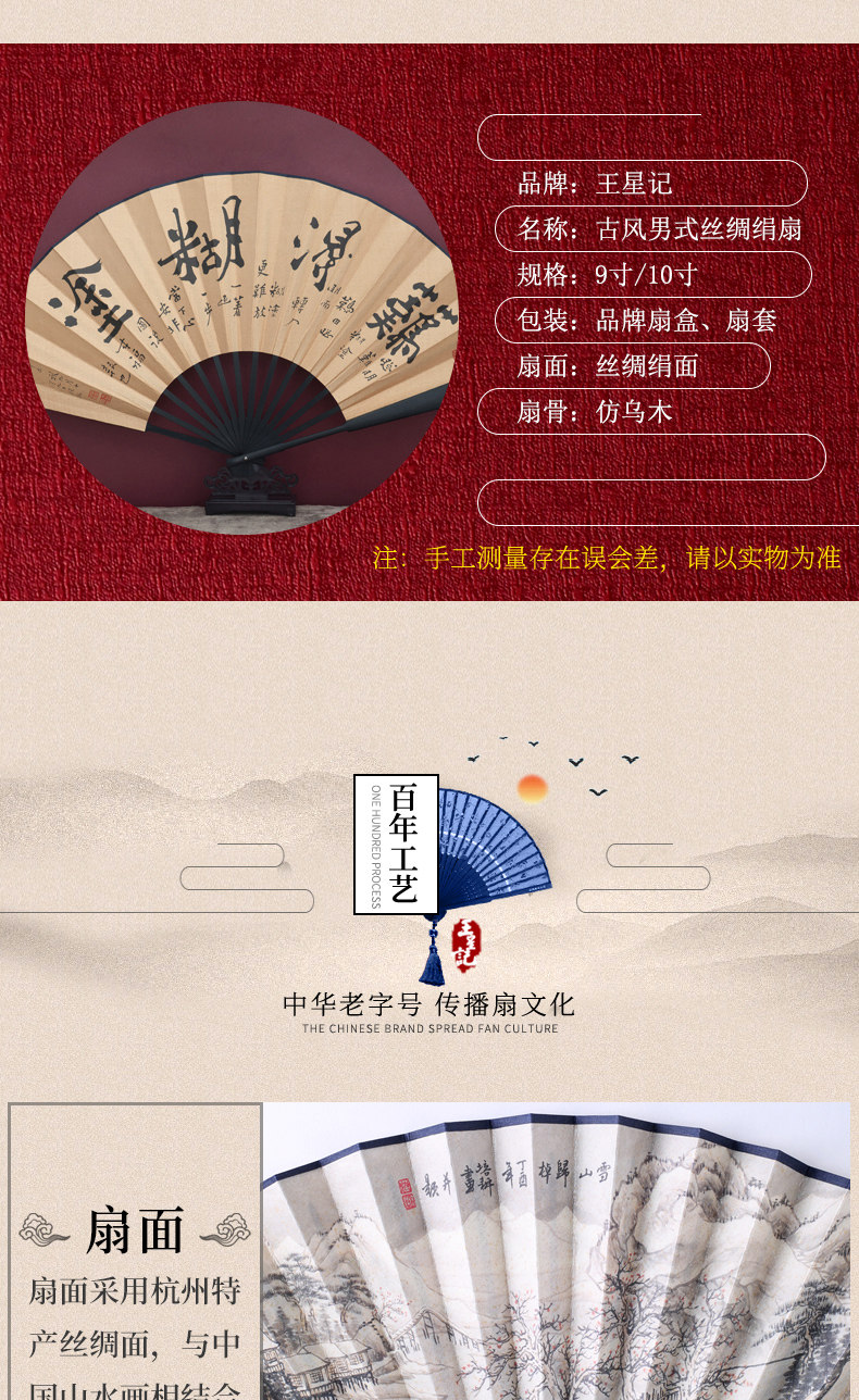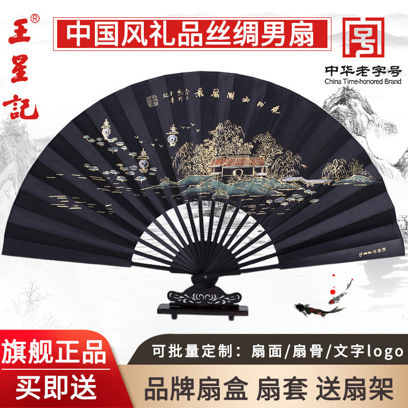 Ван Синцзи флагманский магазин вентилятор китайский стиль древний стиль складной вентилятор мужской Стильный вентилятор из шелка и шелка на заказ летний подарок ремесло вентилятор