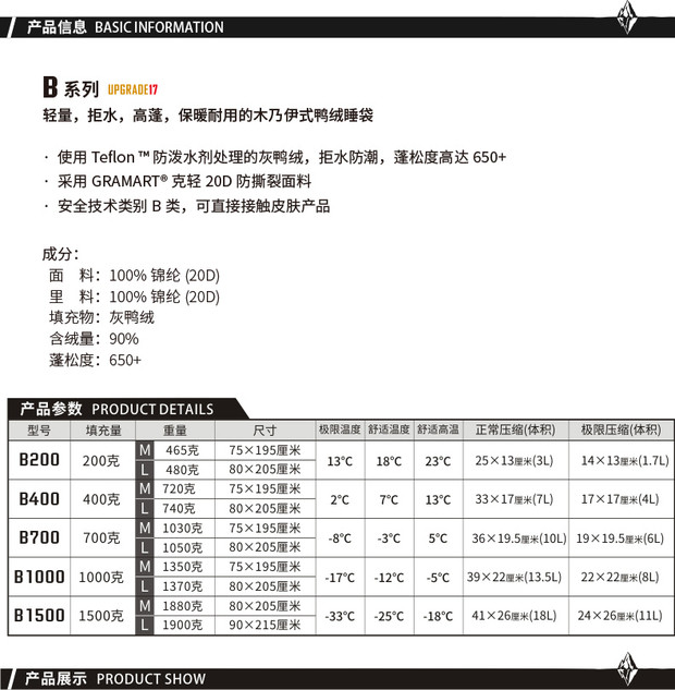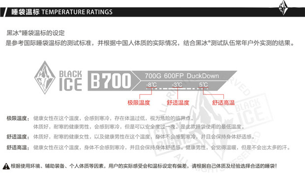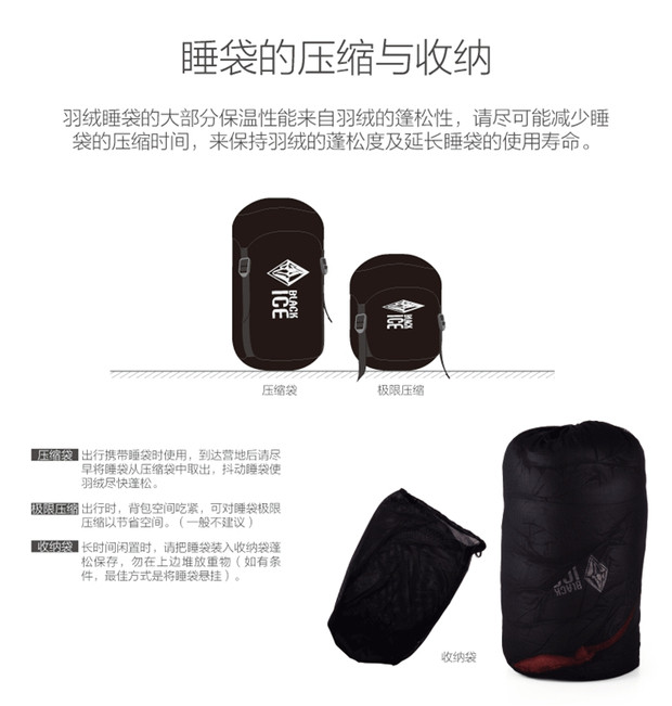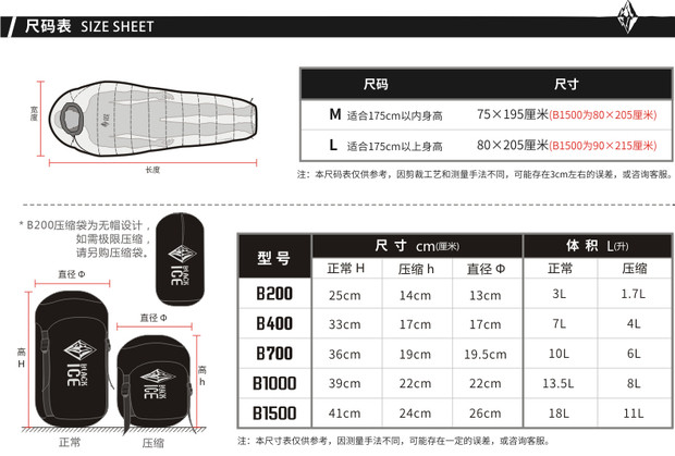 Черный Ледяной спальный мешок B200 / B400 / B700 / B1000 / B1500 Открытый кемпинг вниз